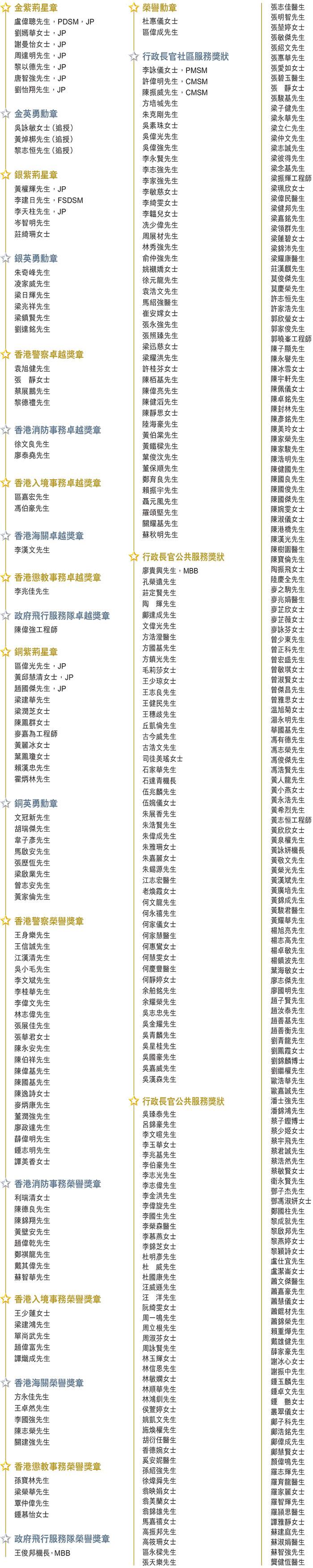二零二零年授勳名單已在憲報刊登,名單上有不少現時或之前任職政府的同事,在此謹向他們衷心致賀。