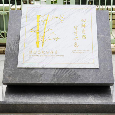 To dovetail with the Government’s policy on promoting green burial and as proposed by the Civil Service Central Consultative Councils, the Civil Service Bureau newly erected a commemorative tablet adjacent to the Gallant Garden to commemorate deceased civil servants laid to rest by green burial. The installation of the commemorative tablet was completed in March 2024.