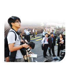 ,以腳架摺梯搶佔對正酒店大門口的位置和分域街口的「咪兜位」。電視台人員忙於將大量直播器材搬到記者區內,調好微波天線,準備晚間六時主要新聞時段作現場直播。