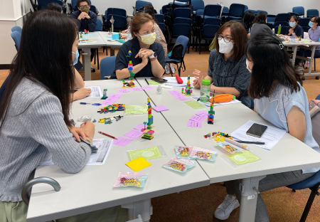 學員在小組中分享自己透過LEGO®模型而表達