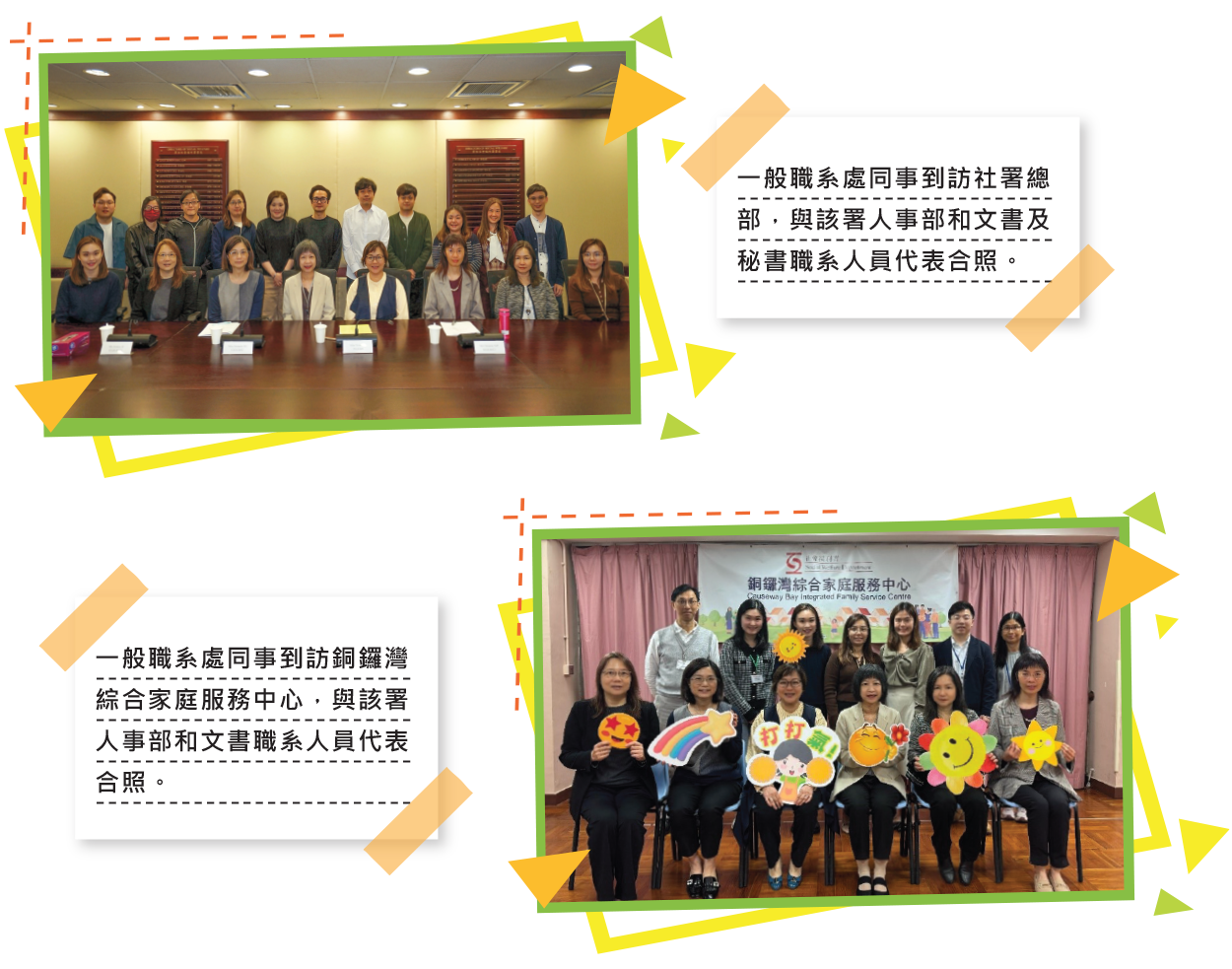 為實地了解文書及秘書職系人員的日常工作和關注事項,一般職系處不時派員探訪各個部門,與相關同事會面與交流。