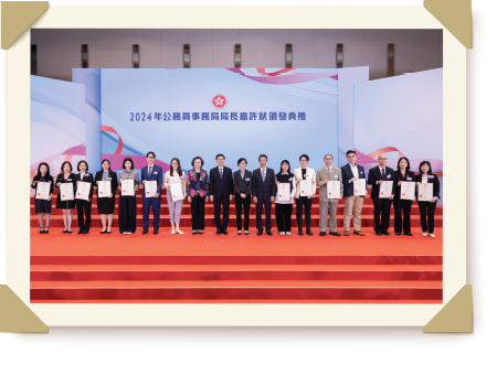 KC一直表現優秀,對部門貢獻良多,在2024年獲頒公務員事務局局長嘉許狀。KC對獲獎深感榮幸,他說:「獲得公務員事務局的嘉許狀,讓我感到十分驚喜,這是對我工作的認可和讚賞。我衷心感謝團隊的合作和支持,全賴大家與我並肩努力,才能順利完成各種任務,獲得上司的推薦。此刻我和家人都感到非常高興,這份榮譽對我意義非凡,並激勵我在未來的工作繼續努力,為市民提供更優質的服務。」