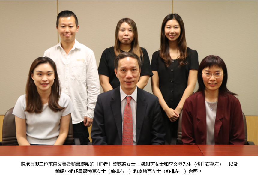 出任一般職系處長逾七年的陳信禧先生於今年10月底開始退休前休假。在處長休假前,《文書及秘書職系通訊》編輯小組聯同三名來自文書及秘書職系的「特約記者」專誠訪問陳處長,請他細談近四十年公職生涯的工作心得、對文書及秘書職系未來發展的看法,並分享他的減壓良方。