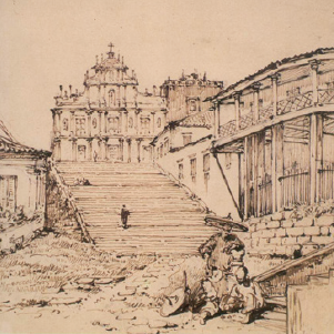 Another example of Chinnery’s artistic legacy is his drawing of the Ruins of St. Paul’s dated 18 October 1834, showcasing the grand facade of Mater Dei Church accessible by a long flight of steps. Next to it stands St. Paul’s College founded in 1594 by the Jesuits, the first western-style university in the Far East. A few months later, however, the church and the college were reduced to heaps of ashes in a conflagration, except for the church facade, which survived the blaze and was captured by another Chinnery drawing dated 3 August 1835. Renowned for the magnificent facade adorned with a fascinating array of western and oriental sculptured motifs and Chinese inscriptions such as “圣母踏龙头” (“St. Mary stepping on the head of the dragon”) and “鬼是诱人为恶” (“The Devil tempting men to commit evils”), the Ruins of St. Paul’s has since then become a landmark tourist attraction and the pride of Macao, embodying the cultural melting pot that defines the city.